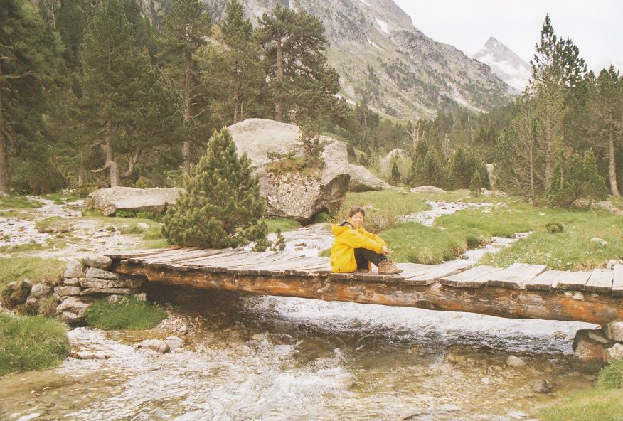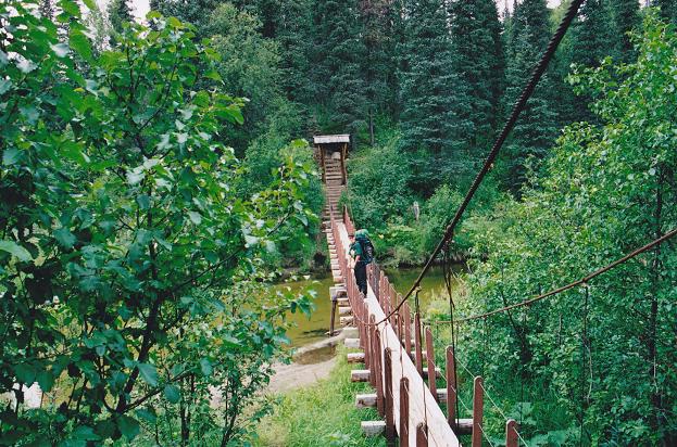 Crossing a river on a swinging bridge over a canyon seems to be fun!